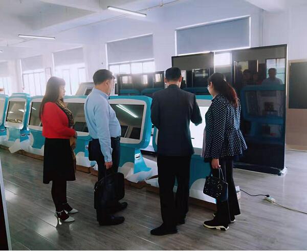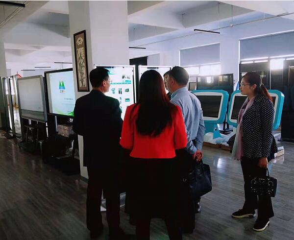 董事長張紅玲女士在給領(lǐng)導(dǎo)介紹全國幼兒園定制的觸控互動終端