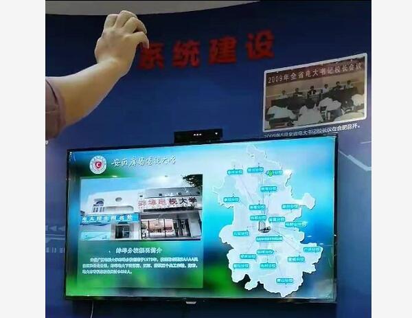 體感互動(dòng),設(shè)備識(shí)別手勢(shì)操作,來(lái)操控觸摸設(shè)備,讓人體驗(yàn)隔空遠(yuǎn)距離來(lái)互動(dòng)體驗(yàn)設(shè)備。展現(xiàn)出展廳的科技感。